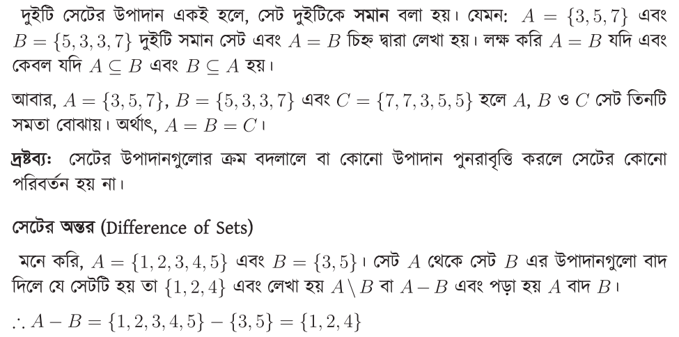 সেটের সমতা ও অন্তর