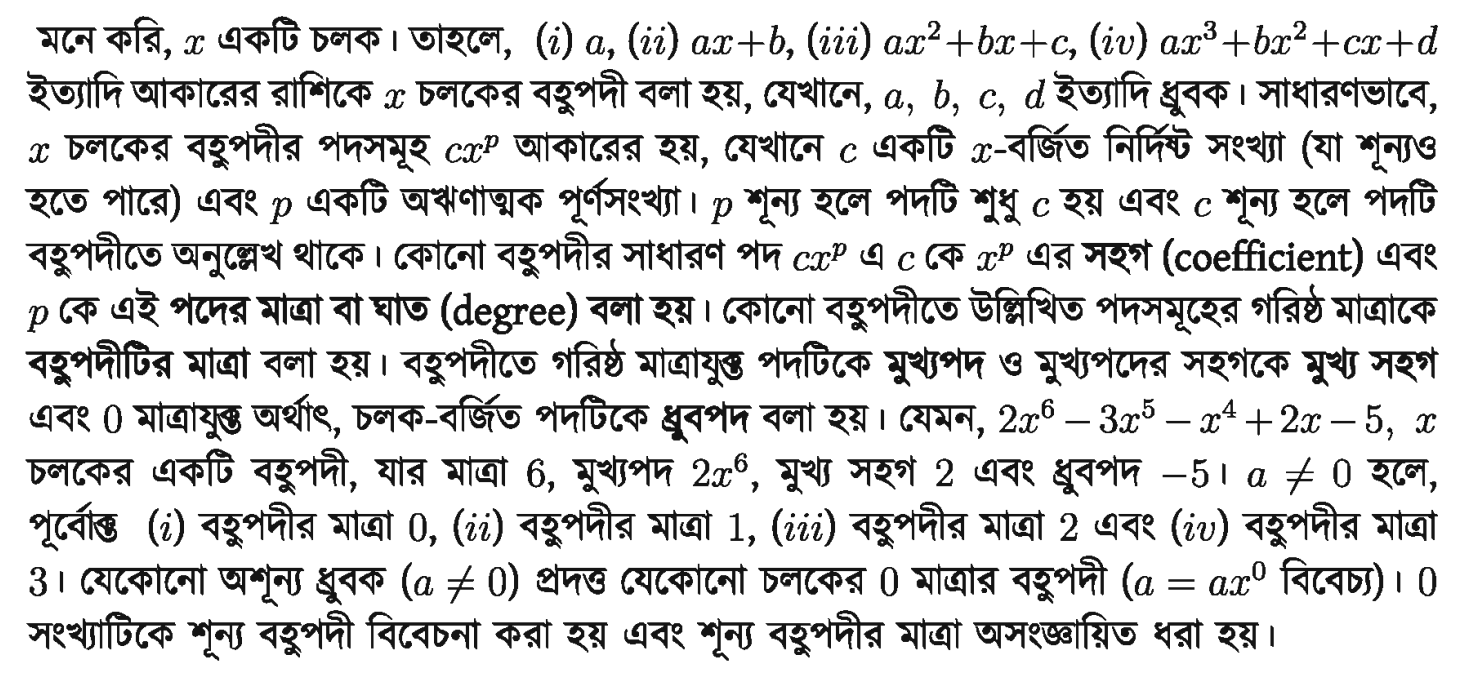 ২.২.১। এক চলকের বহুপদী