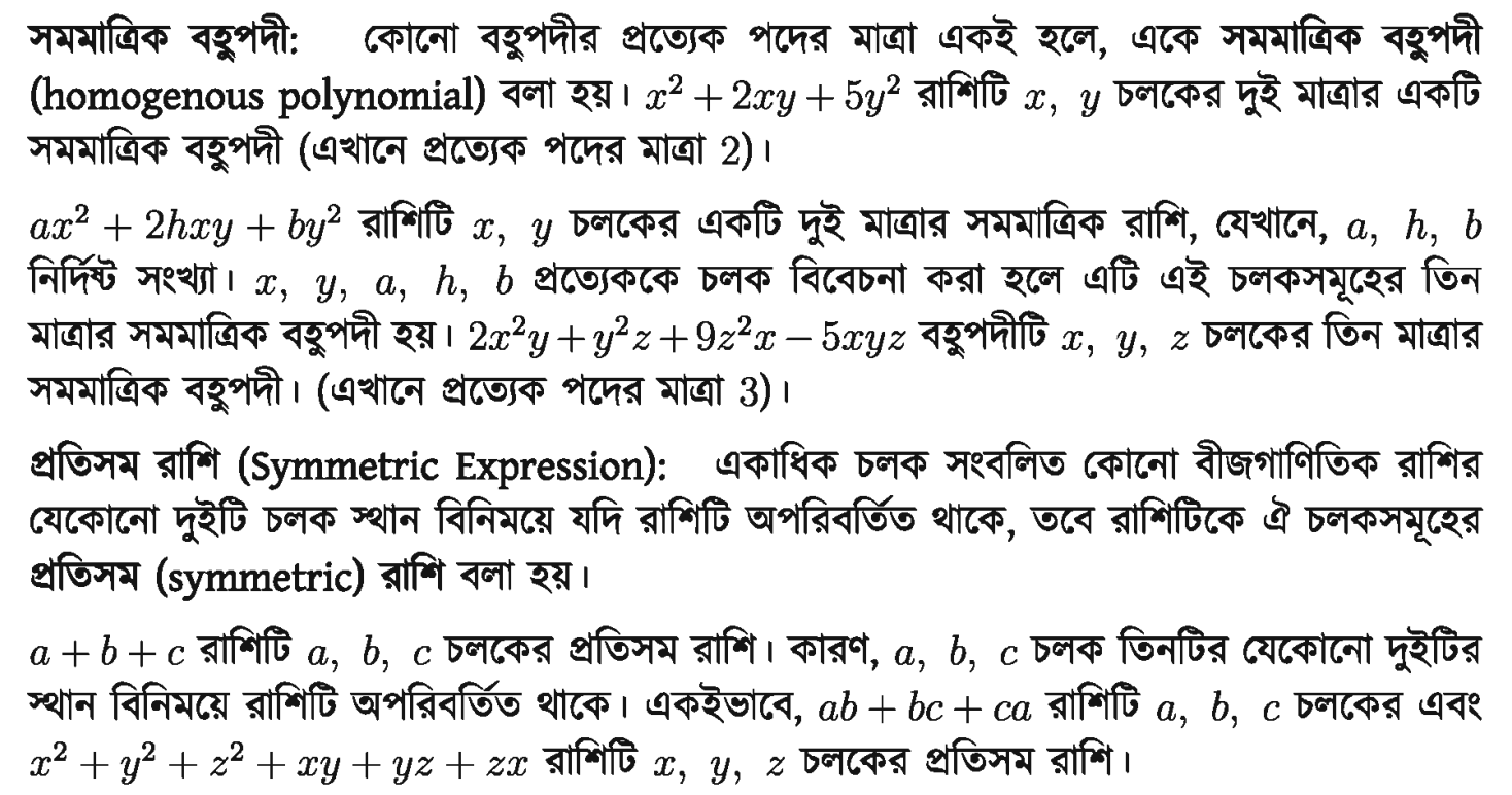 ২.৬। সমমাত্রিক বহুপদী, প্রতিসম ও চক্রক্রমিক রাশি