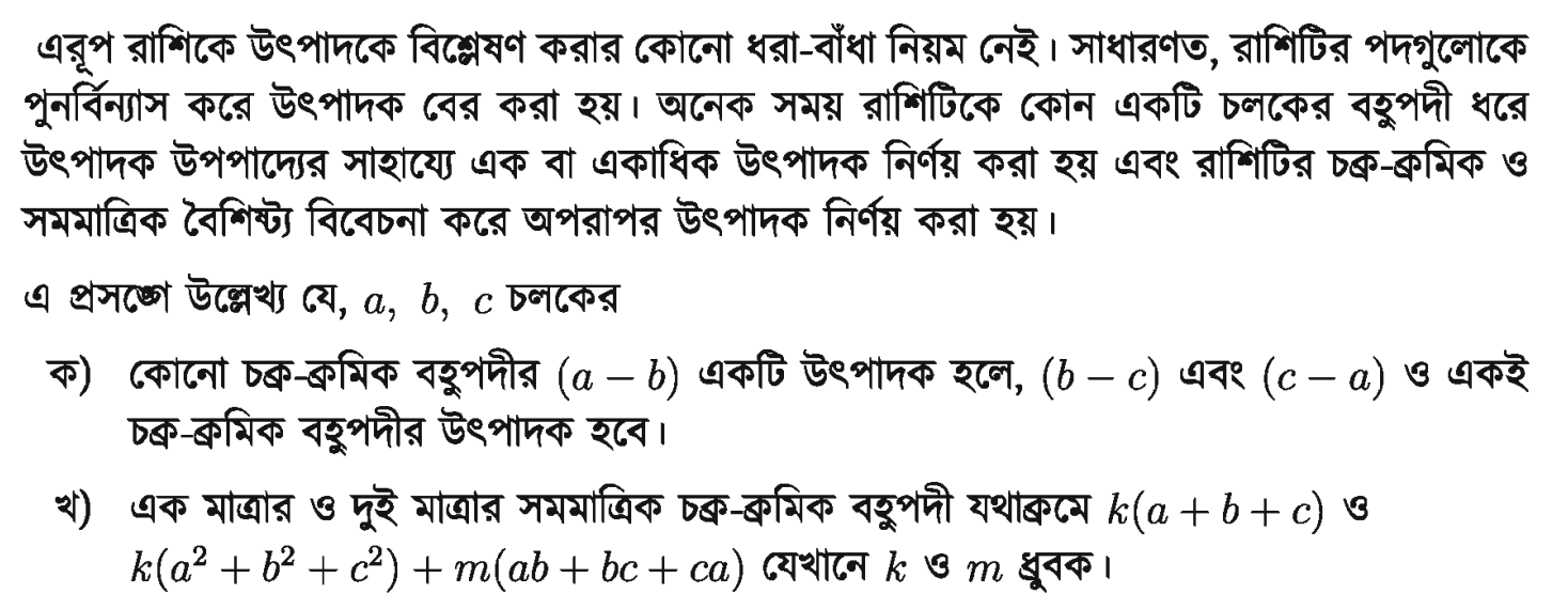 ২.৭। চক্র-ক্রমিক বহুপদীর উৎপাদকে বিশ্লেষণ