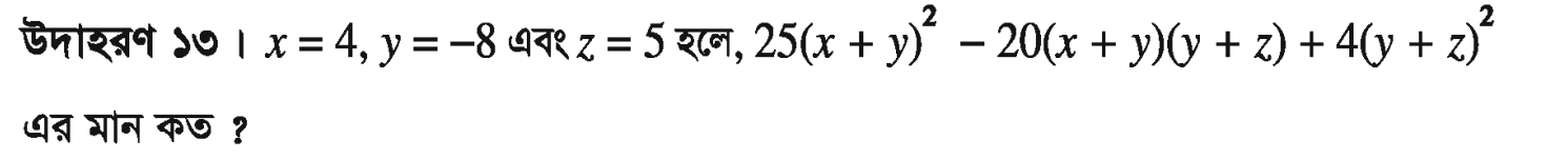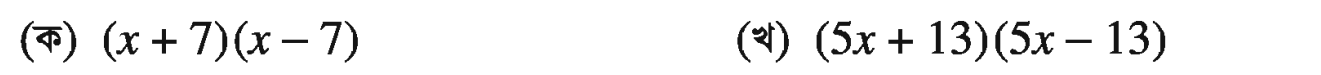 ১৩। দুইটি রাশির বর্গের অন্তররূপে প্রকাশ কর :