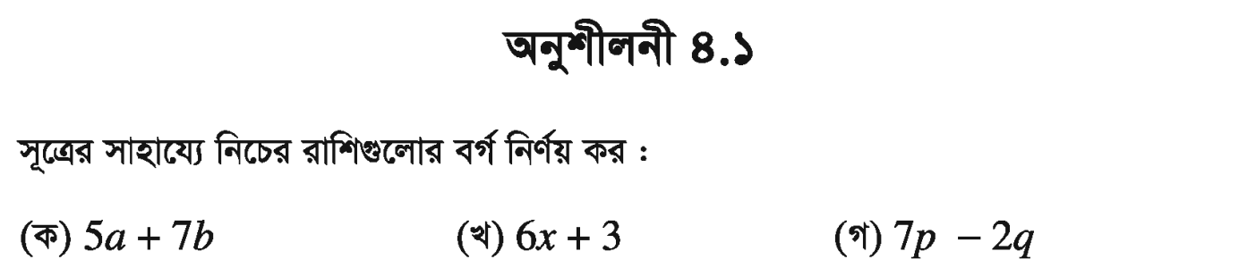 চতুর্থ অধ্যায় । বীজগণিতীয় সূত্রাবলি ও প্রয়োগ