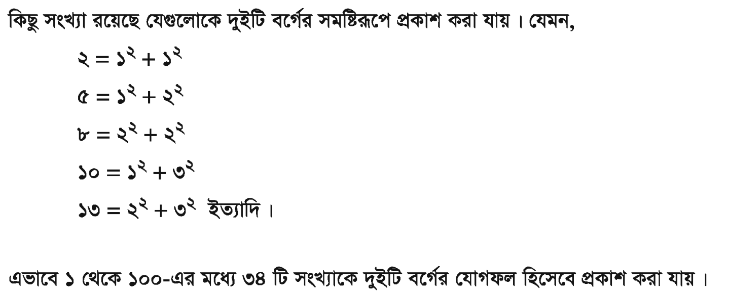 ১.৩। সংখ্যাকে দুইটি বর্গের সমষ্টিরূপে প্রকাশ