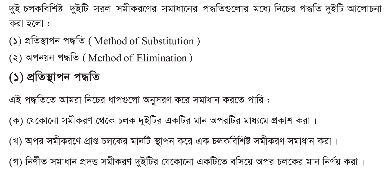 ৬.২.১। দুই চলকবিশিষ্ট সরল সহসমীকরণের সমাধান (প্রতিস্থাপন পদ্ধতি)