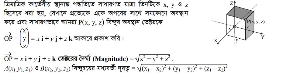 ২.১০ ভেক্টরের ত্রিমাত্রিক স্থানাঙ্ক পদ্ধতি (Three dimentional co-ordinate system of vector)