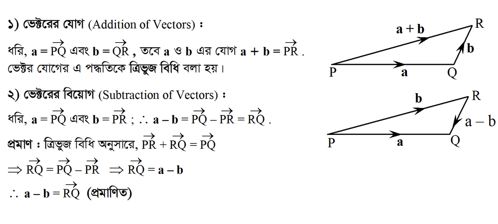 ২.৩ দ্বিমাত্রিক ভেক্টর যোগ, বিয়োগ ও স্কেলার গুণিতক নির্ণয় করো? (Determine the multiplication, addition and subtraction of two-dimensional vectors?)