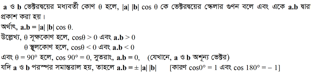 ২.৬ ভেক্টরের স্কেলার গুণন (Scalar or Dot Product of Vectors)