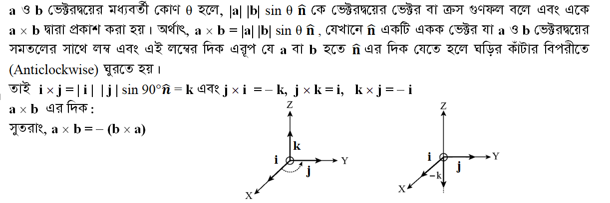 ২.৮ ভেক্টরের ভেক্টর গুণ (Vector or Cross Product of Vectors)