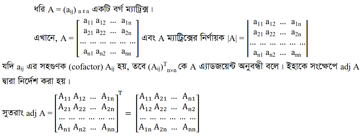 ১.১১ বর্গ ম্যাট্রিক্সের এডজয়েন্ট (Adjoint of a square matrix)