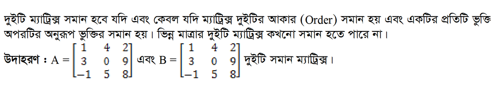 ১.৩ ম্যাট্রিক্স এর সমতা (Equality of Matrices)