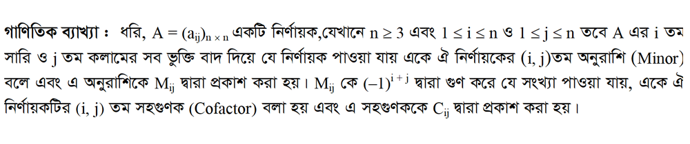 ১.৮ নির্ণায়কের অনুরাশি ও সহগুণক ব্যাখ্যা করো (Minor and Co-factor of a Determinant)