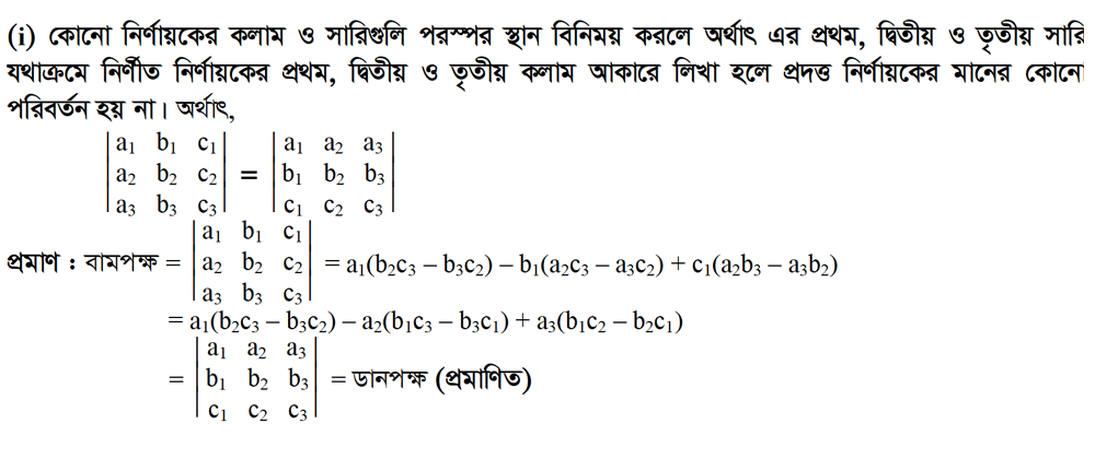 ১.৯ নির্ণায়কের ধর্মাবলী ( Properties of Determinants)
