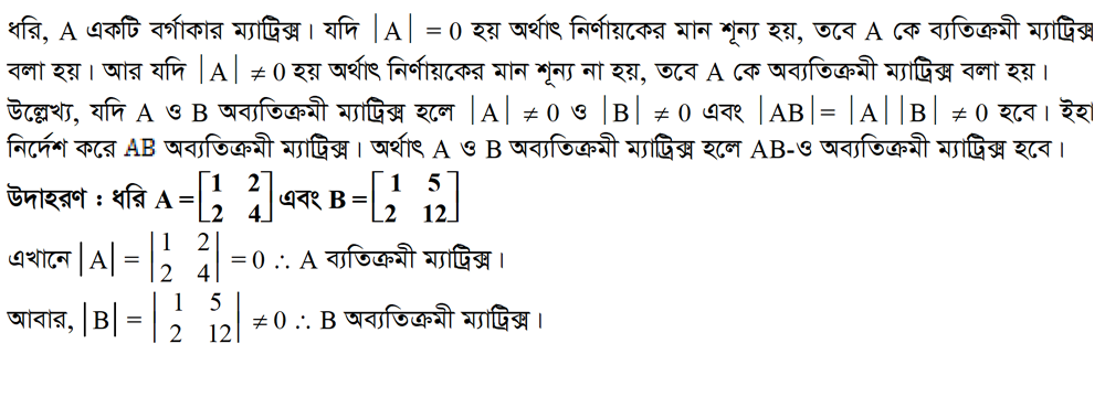 ১.১০ ব্যতিক্রমী ও অব্যতিক্রমী ম্যাট্রিক্স (Singular and Non-Singular Matrices)