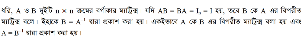 ১.১২ বর্গ ম্যাট্রিক্সের বিপরীত ম্যাট্রিক্স (Inverse of a square Matrix)