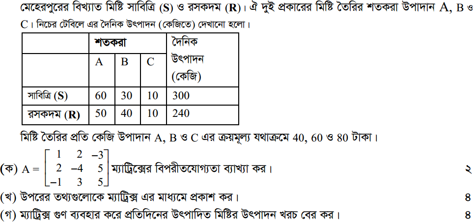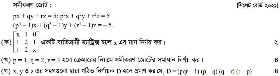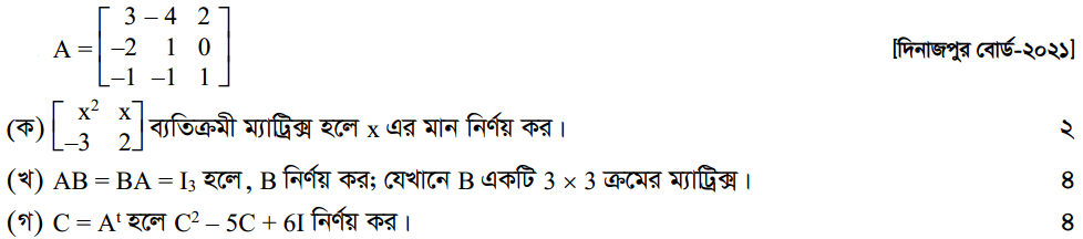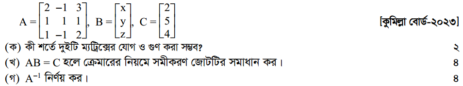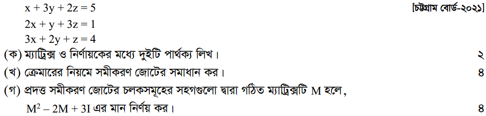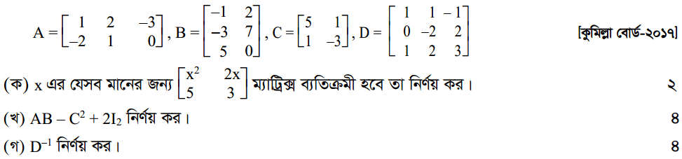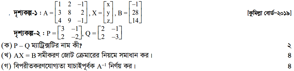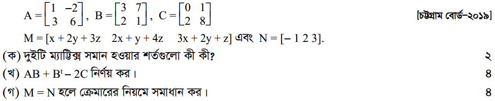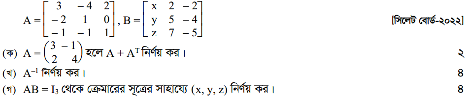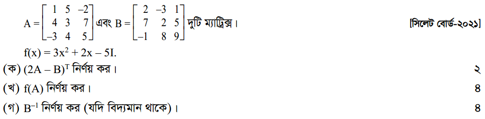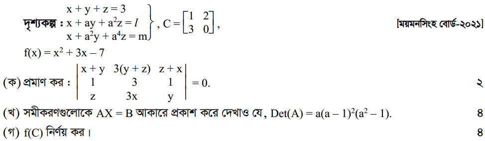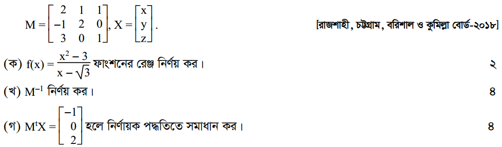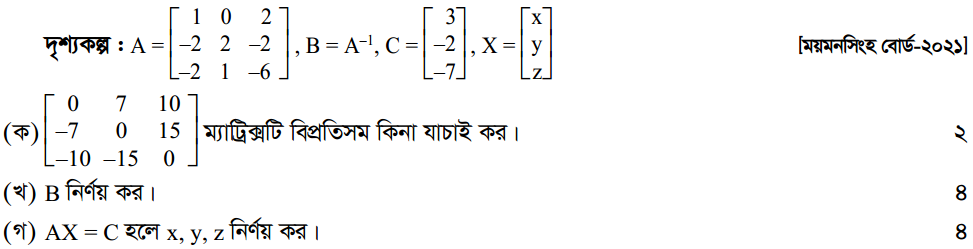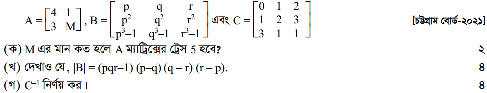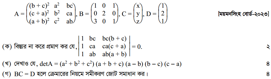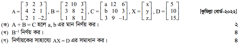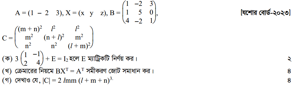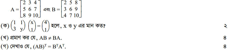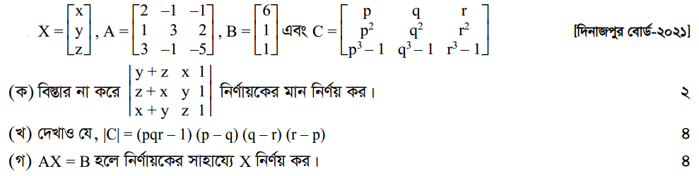 প্রথম অধ্যায় | ম্যাট্রিক্স ও নির্ণায়ক ( Matrices and Determinants)