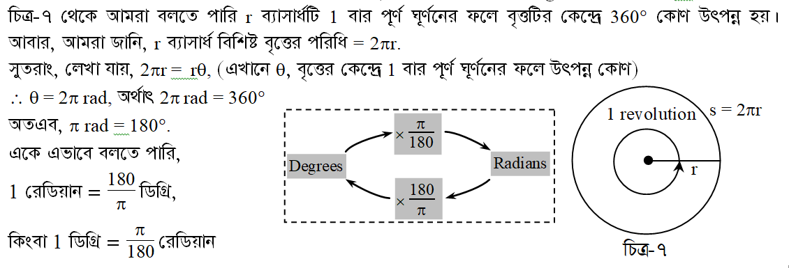 ৬.২ কোণের ডিগ্রি ও রেডিয়ান পরিমাপের মধ্যে সম্পর্ক (Relation between degree and radian)