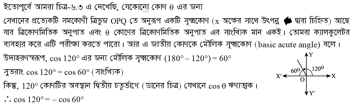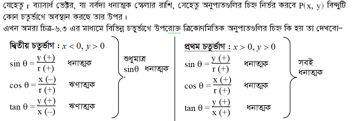 ৬.৫ ত্রিকোণমিতিক অনুপাতগুলির চিহ্ন (sign of trigorometric ratios)