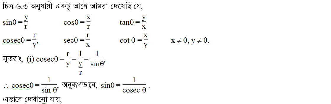 ৬.৬ ত্রিকোণমিতিক অনুপাতসমূহের মধ্যে পারস্পরিক সম্পর্ক (Relation between trigonometric ratios of angle)