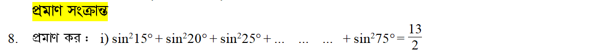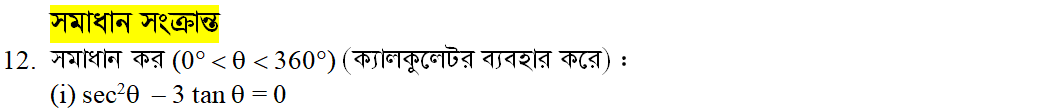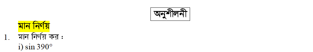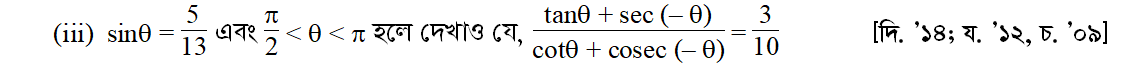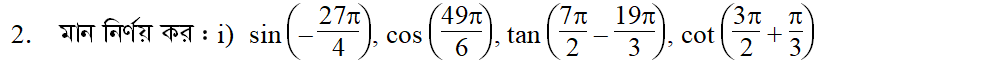 সপ্তম অধ্যায় | সংযুক্ত কোণের ত্রিকোণমিতিক অনুপাত (TRIGONOMETRIC RATIOS OF ASSOCIATED ANGLES)