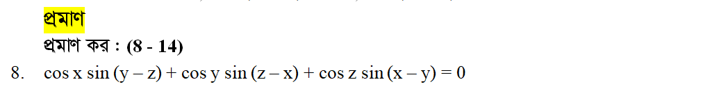 সপ্তম অধ্যায় | সংযুক্ত কোণের ত্রিকোণমিতিক অনুপাত (TRIGONOMETRIC RATIOS OF ASSOCIATED ANGLES)