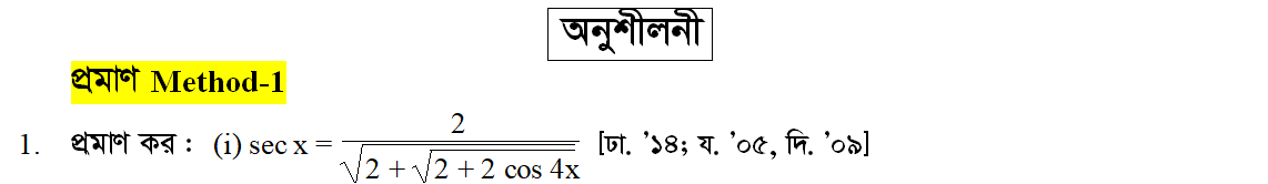 সপ্তম অধ্যায় | সংযুক্ত কোণের ত্রিকোণমিতিক অনুপাত (TRIGONOMETRIC RATIOS OF ASSOCIATED ANGLES)