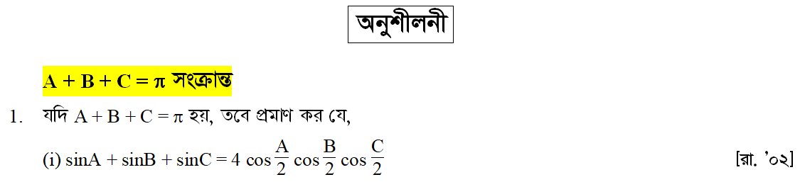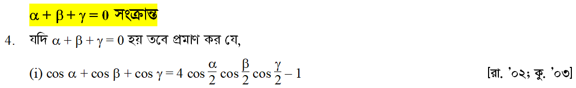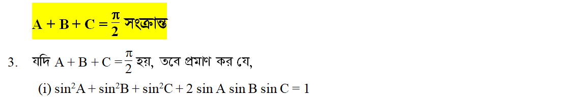 সপ্তম অধ্যায় | সংযুক্ত কোণের ত্রিকোণমিতিক অনুপাত (TRIGONOMETRIC RATIOS OF ASSOCIATED ANGLES)