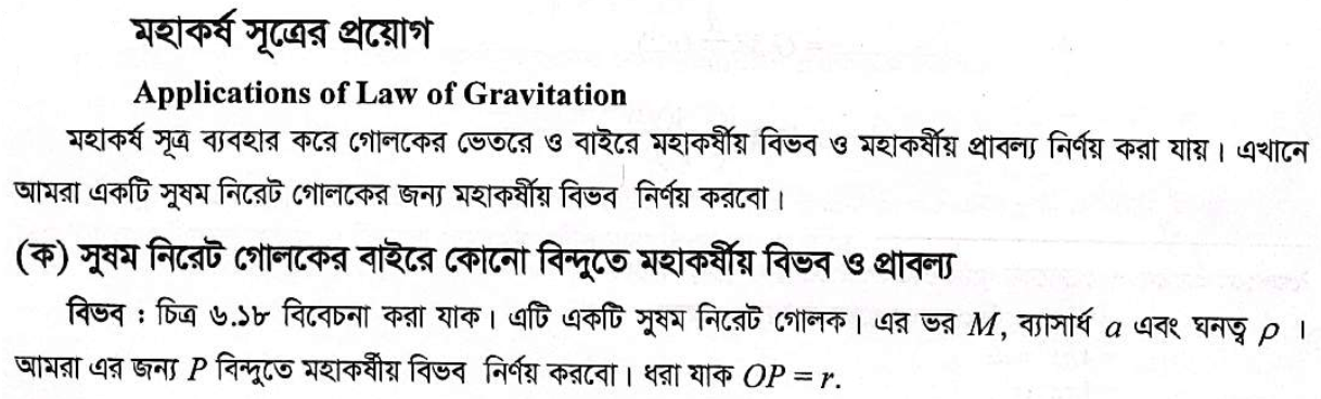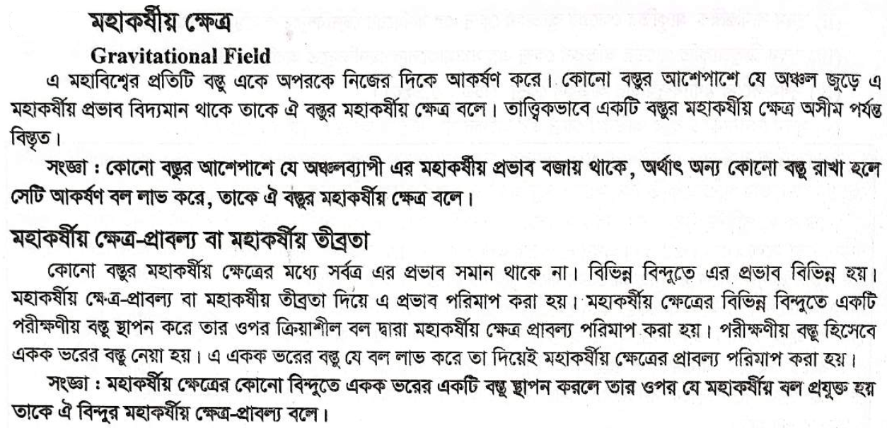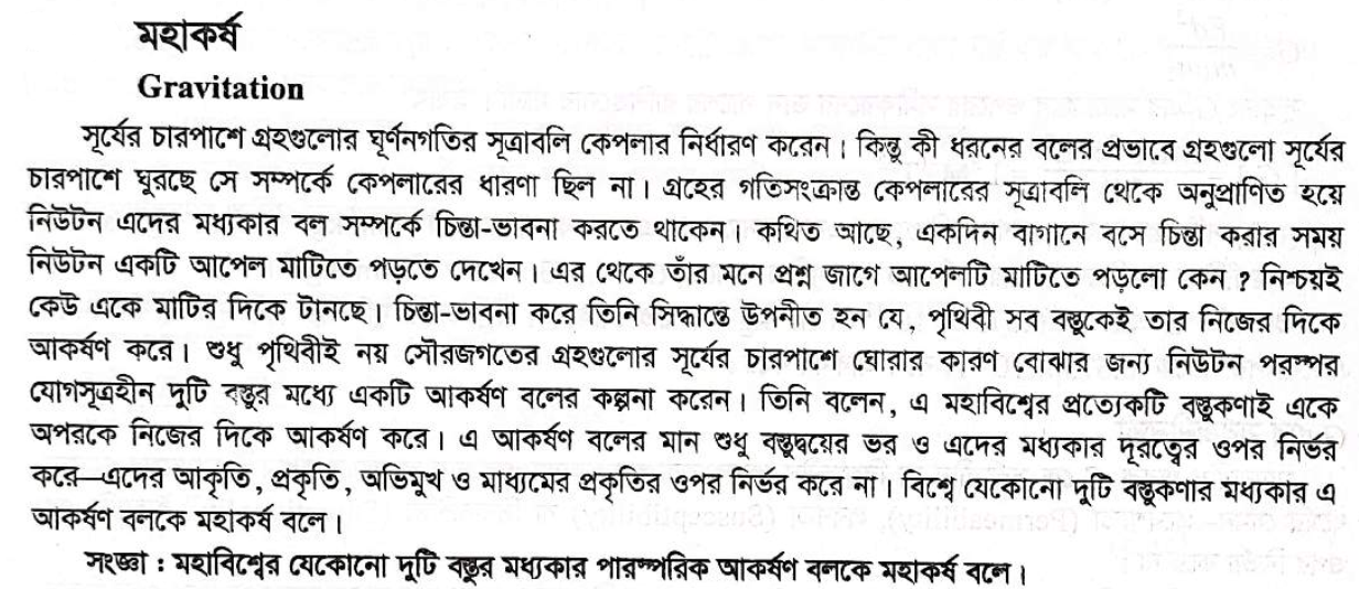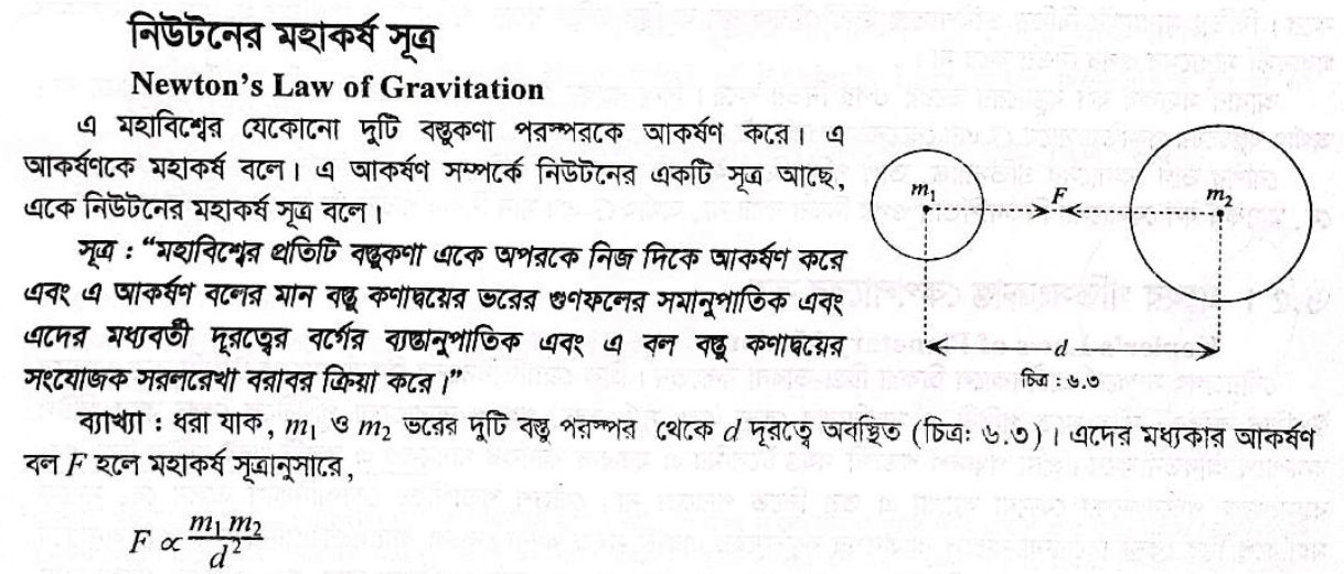ষষ্ঠ অধ্যায় । মহাকর্ষ ও অভিকর্ষ