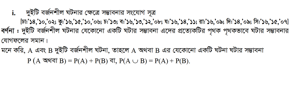 ১০.৮ সম্ভাবনার সংযোগসূত্র (Addition rule of Probabilities)