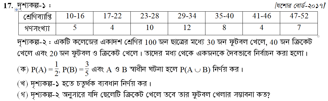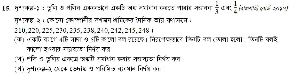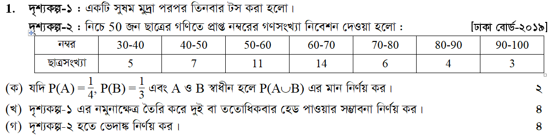 দশম অধ্যায় | বিস্তার পরিমাপ ও সম্ভাবনা (MEASURES OF DISPERSION AND PROBABILITY)