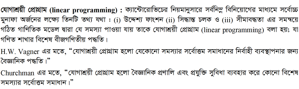 দ্বিতীয় অধ্যায় | যোগাশ্রয়ী প্রোগ্রাম (LINEAR PROGRAMMING)