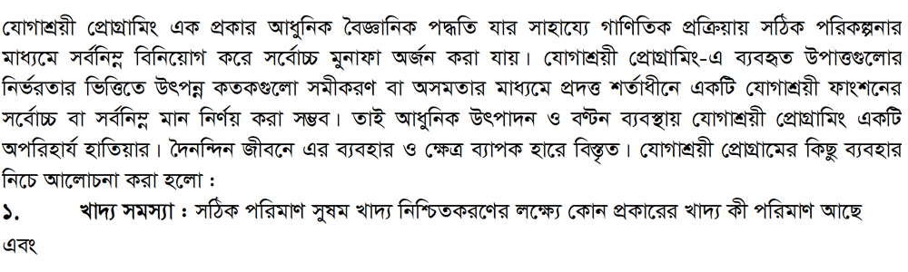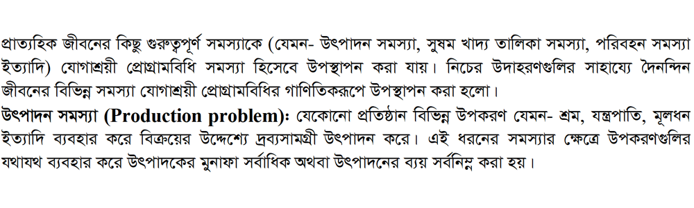 ২.৩ যোগাশ্রয়ী প্রোগ্রামের ব্যবহার (Application of linear programming)
