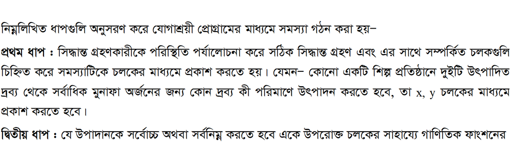 ২.৬ যোগাশ্রয়ী প্রোগ্রামিং-এর মাধ্যমে সমস্যা গঠন (Formulation of linear programming)