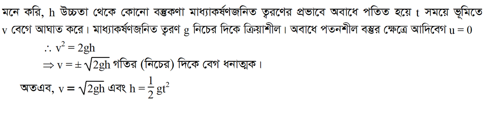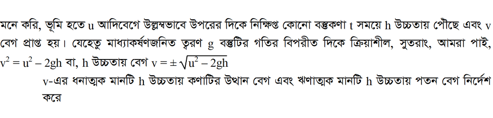 ৯.১৭ উল্লম্ব রেখায় চলমান বস্তুকণার গতির সমীকরণ :