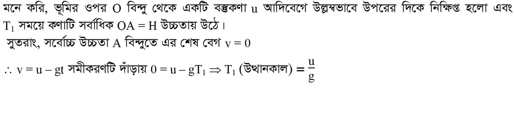৯.১৯ উল্লম্বভাবে নিক্ষিপ্ত কোনো বস্তুকণার প্রদত্ত উচ্চতায় বেগ ও গমনকাল নির্ণয়