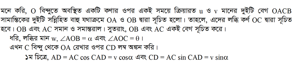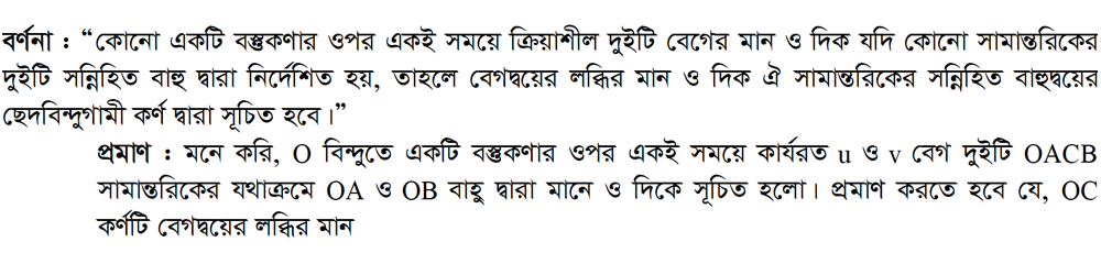 ৯.৫ বেগের সামান্তরিক সূত্র (Parallelogram law of velocities)
