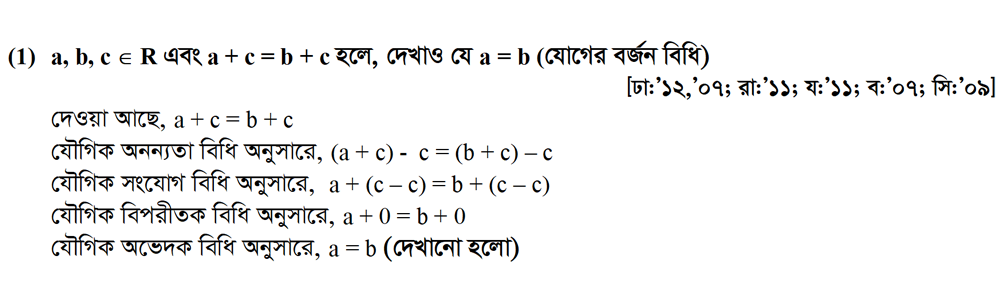 ১.৪ বাস্তব সংখ্যার স্বীকার্যভিত্তিক আরও কিছু গুণাবলির প্রমাণ