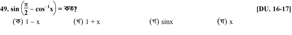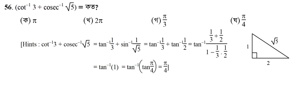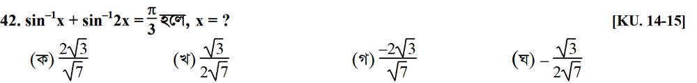 সপ্তম অধ্যায় | বিপরীত ত্রিকোণমিতিক ফাংশন ও ত্রিকোণমিতিক সমীকরণ (INVERSE TRIGONOMETRIC FUNCTIONS AND TRIGONOMETRIC EQUATIONS)