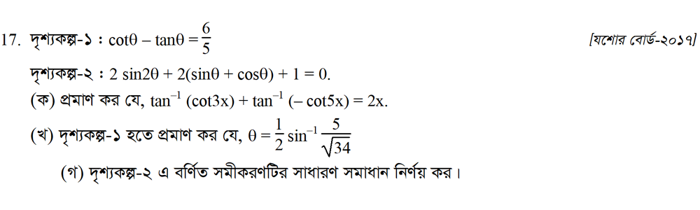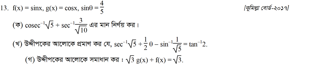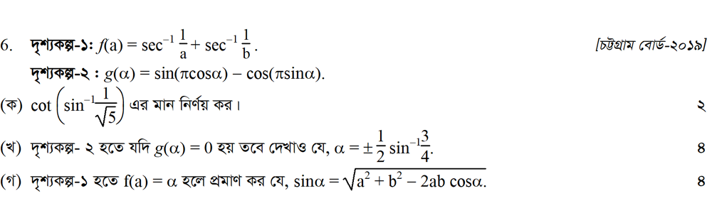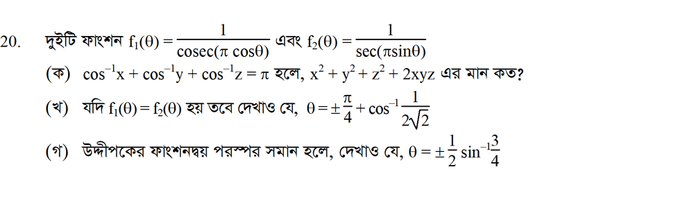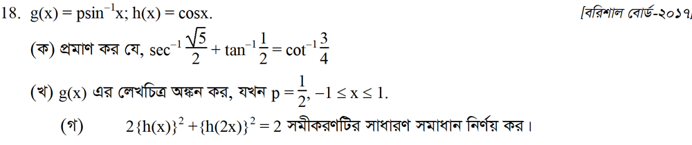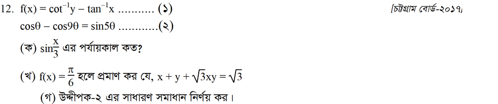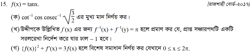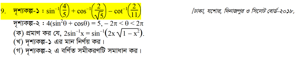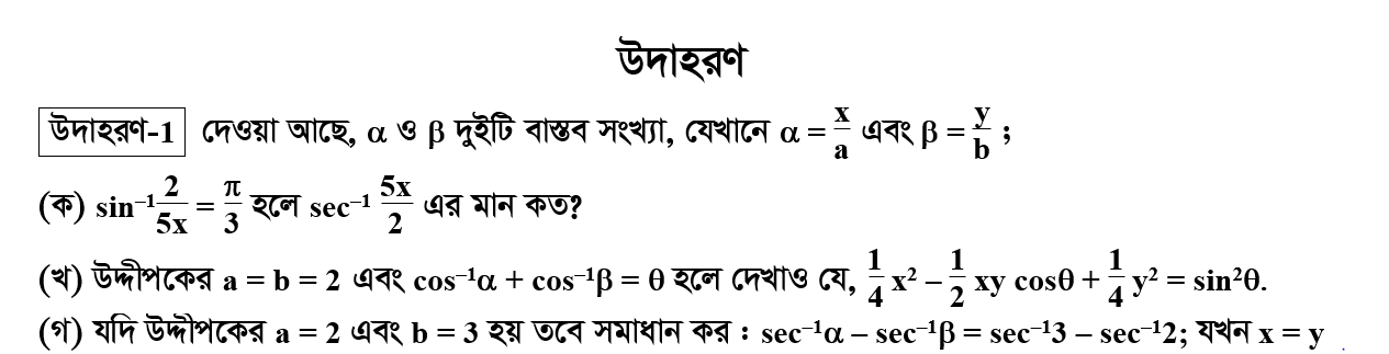 সপ্তম অধ্যায় | বিপরীত ত্রিকোণমিতিক ফাংশন ও ত্রিকোণমিতিক সমীকরণ (INVERSE TRIGONOMETRIC FUNCTIONS AND TRIGONOMETRIC EQUATIONS)